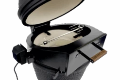 De pizza-oven is voorzien van een handige deur, waardoor u niet de gehele deksel van uw The Bastard barbecue hoeft te openen. Hierdoor verliest u geen warmte. De oven is speciaal ontworpen om pizza’s eenvoudig in en uit de oven te schuiven met een pizzaschep. De pizza-oven komt met een op maat gemaakte pizzasteen.